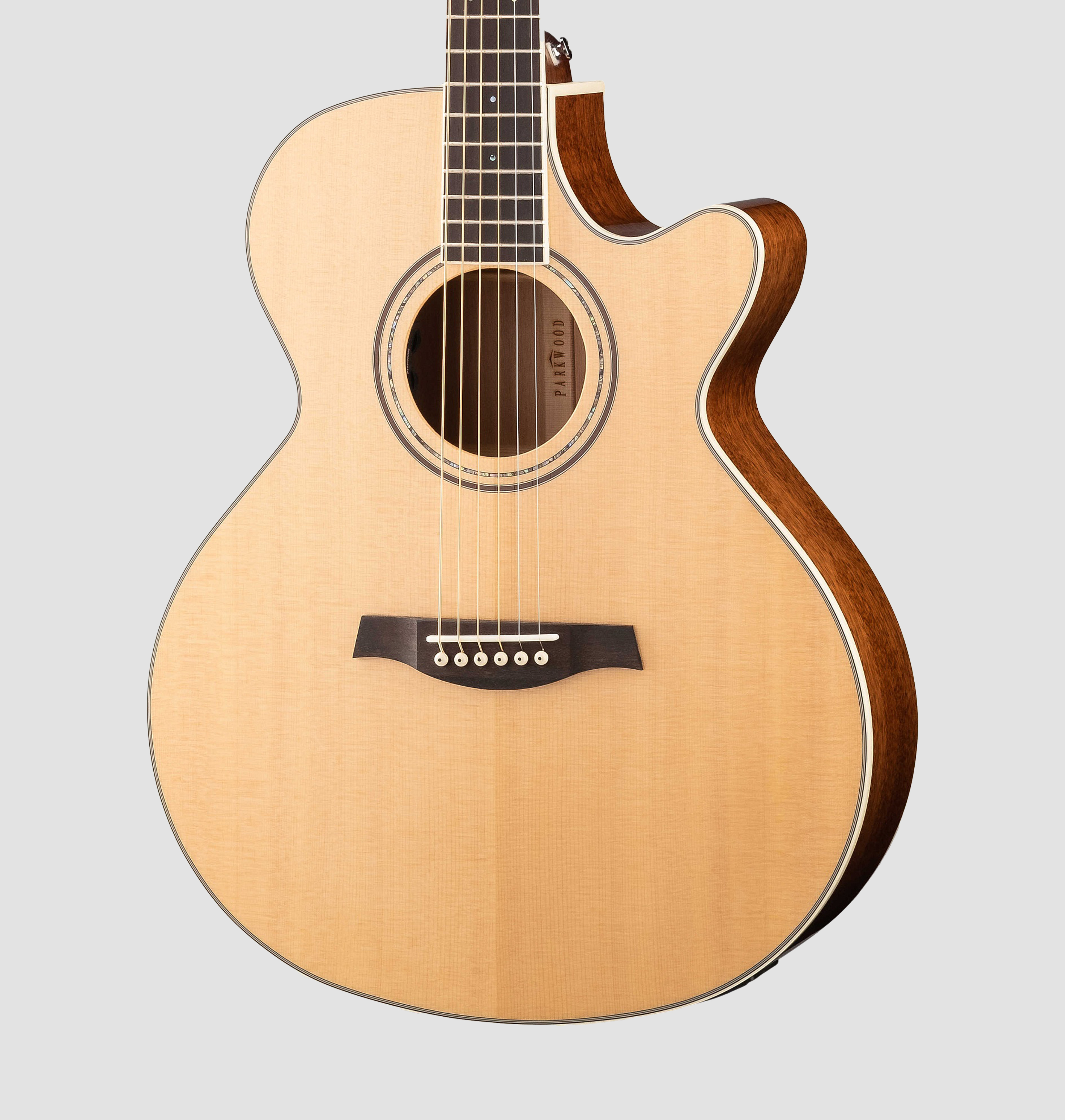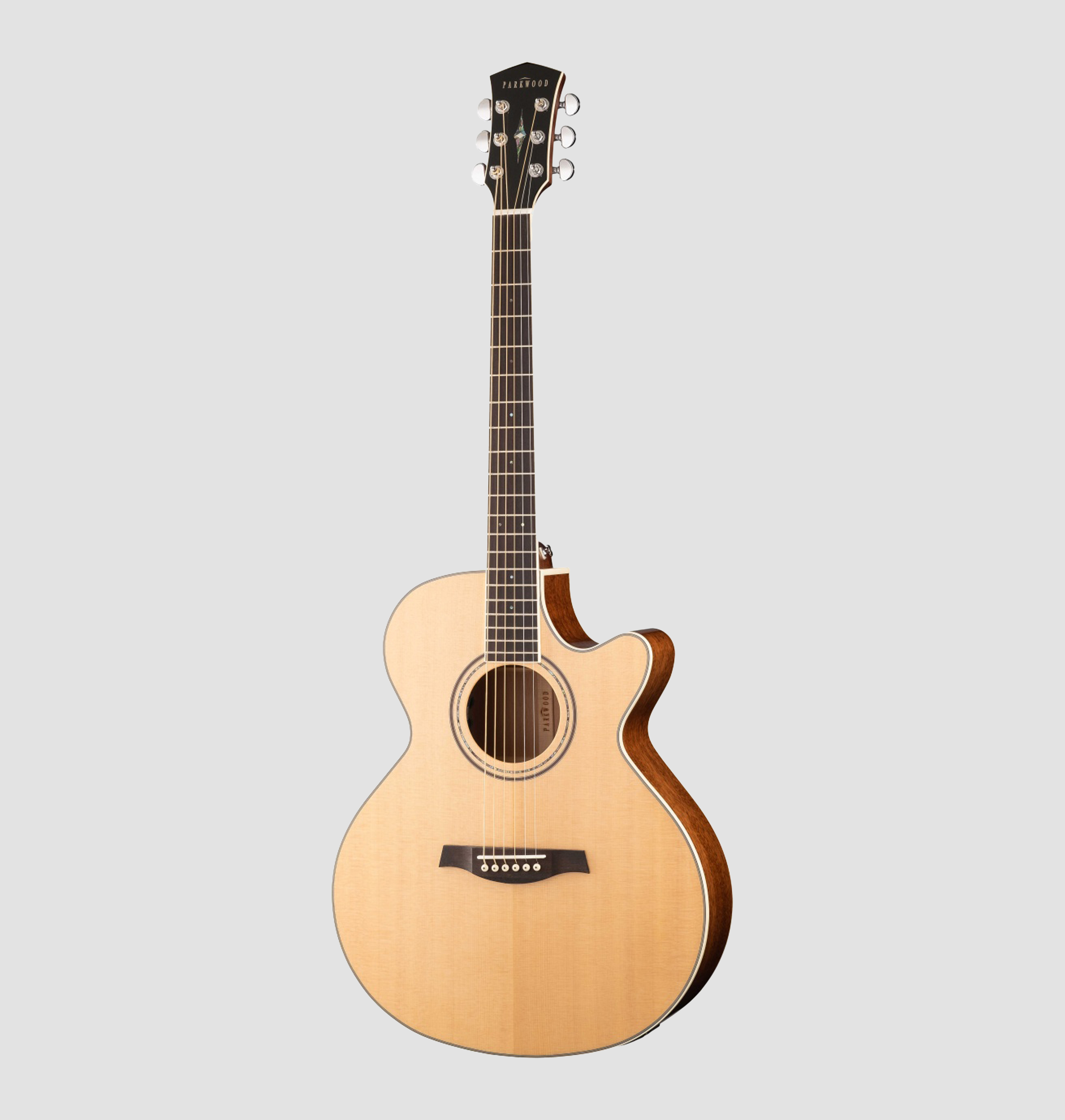 Верхняя дека из тщательно отобранной древесины ситхинской ели, обечайки из шпона махагони и задняя дека из массива махагони обеспечивают общую жесткость и прочность корпуса гитары.