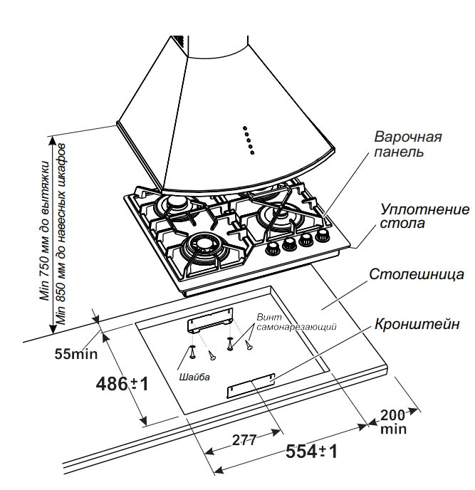 Система газ-контроля на всех конфорках (отключает подачу газа при затухании пламени).