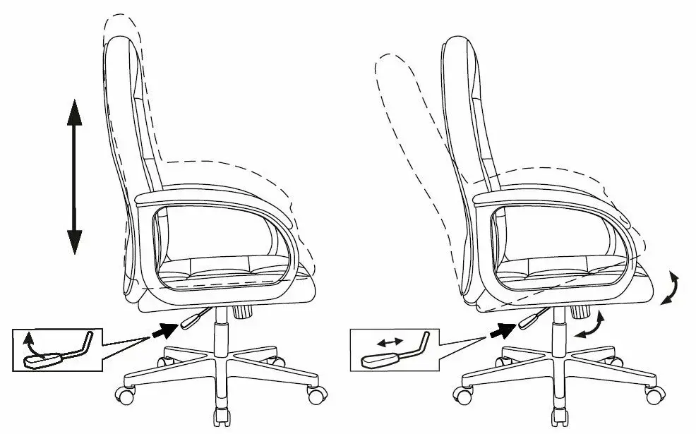 - Регулировка положения спинки: Фиксация спинки в 5 положениях для оптимального угла наклона и разгрузки позвоночника.
